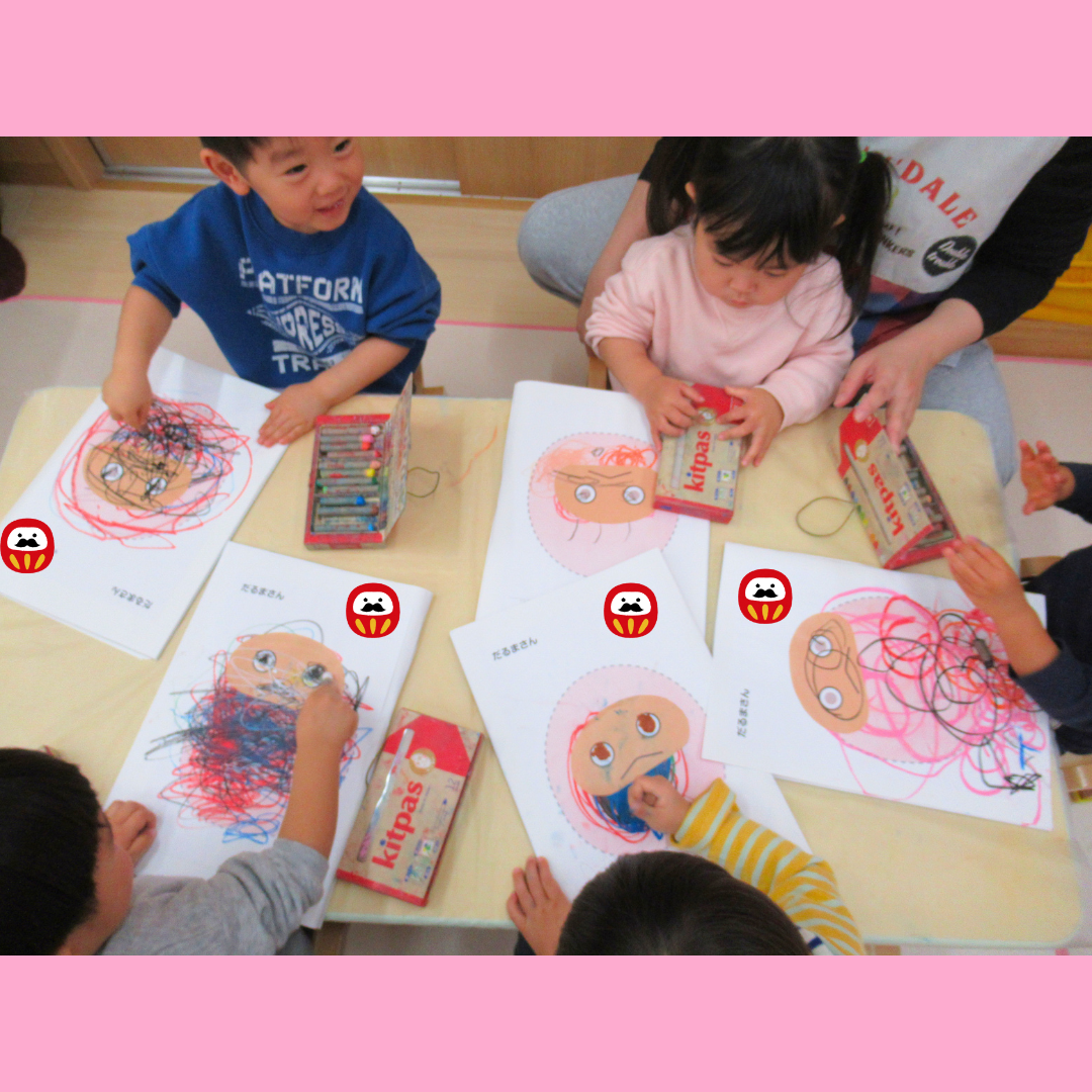 絵画あそびで「だるまさん」を描きました🎵